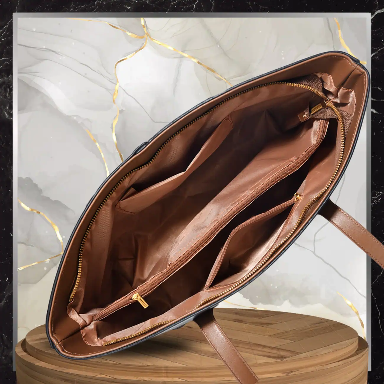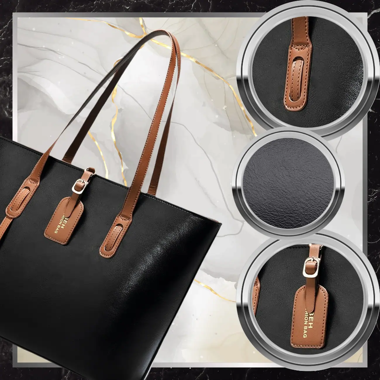 Kolor: klasyczna czerń z kontrastującymi, karmelowymi uchwytami