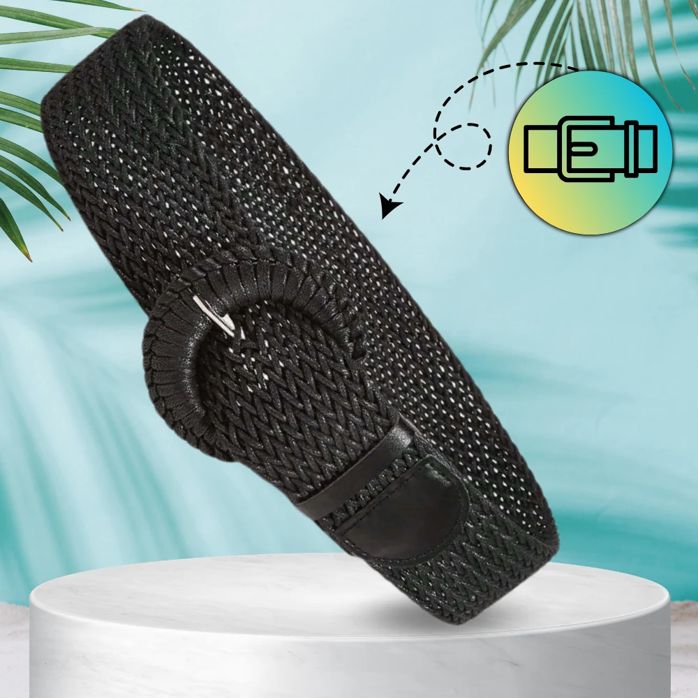 Pasek damski słomiany modny elastyczny do sukienki - KLAMRA OKRĄGŁA