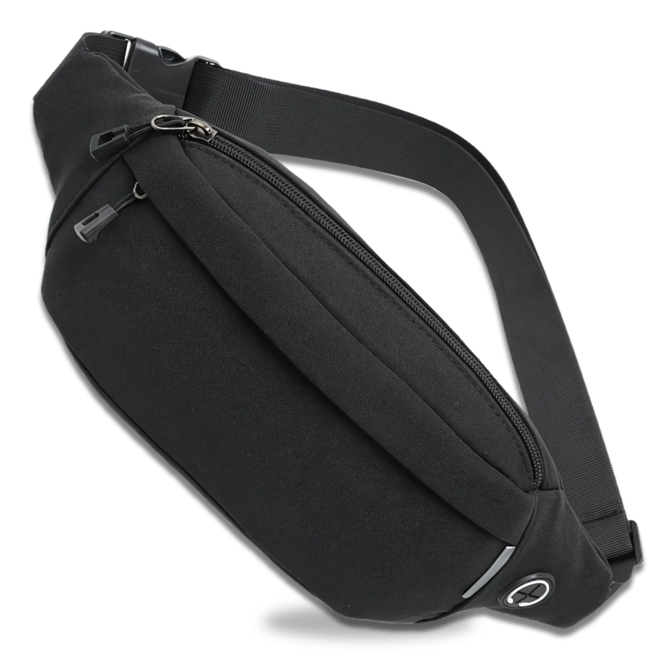 Czarna nerka unisex z portem USB odblaskowa biodrówka sportowa i miejska