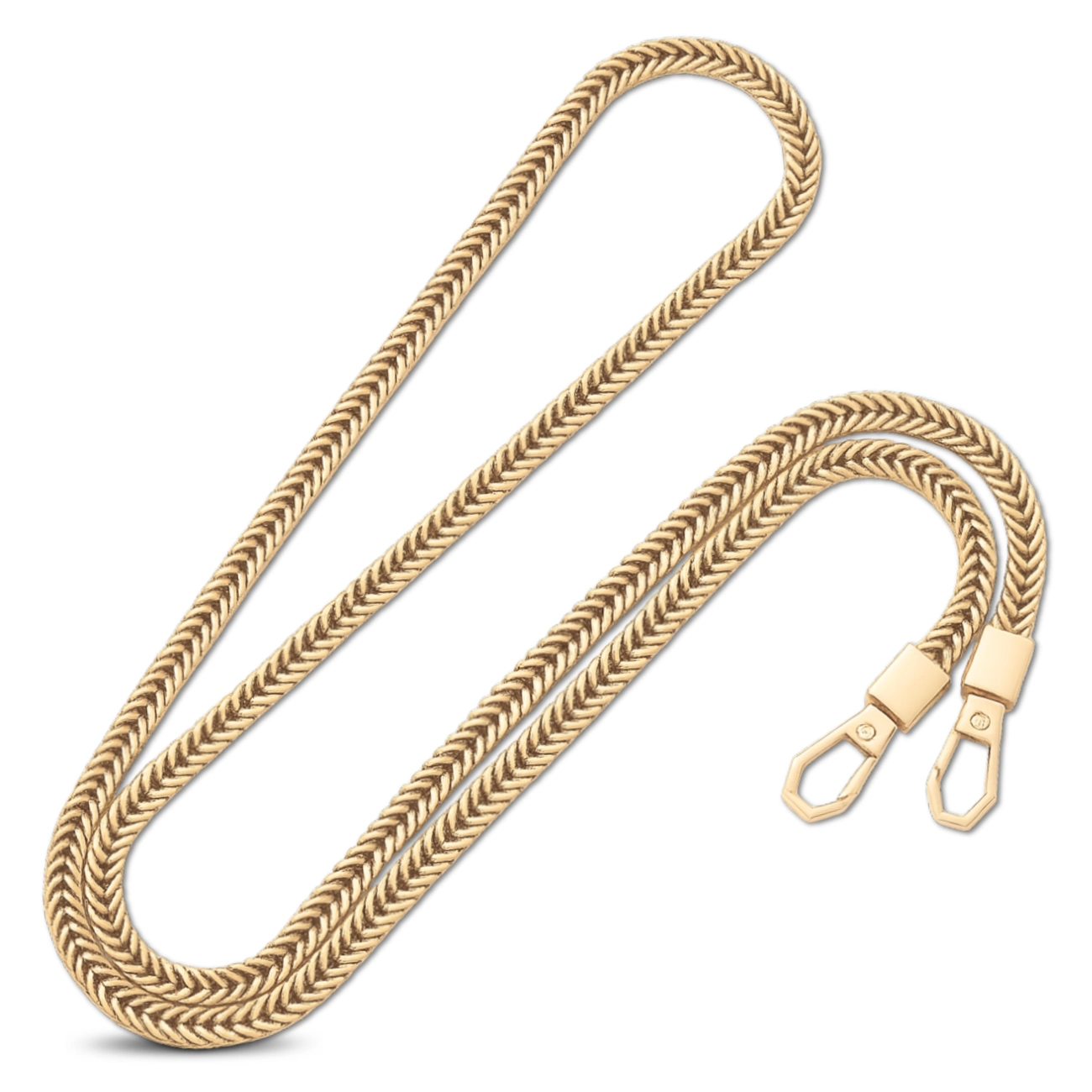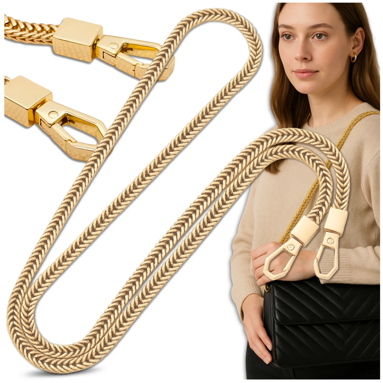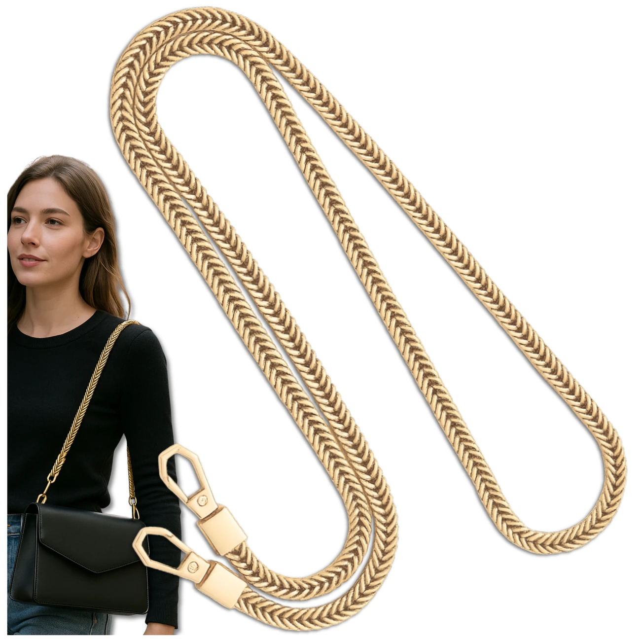 Polecany przez nas złoty pasek łańcuch do torebki 120 cm wygląda nie tylko estetycznie, ale również solidnie. Wyjątkowość produktu tkwi w misternym wzorze jego splotu, przypominającym delikatną jodełkę.