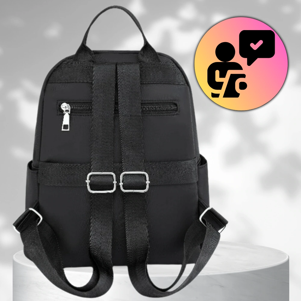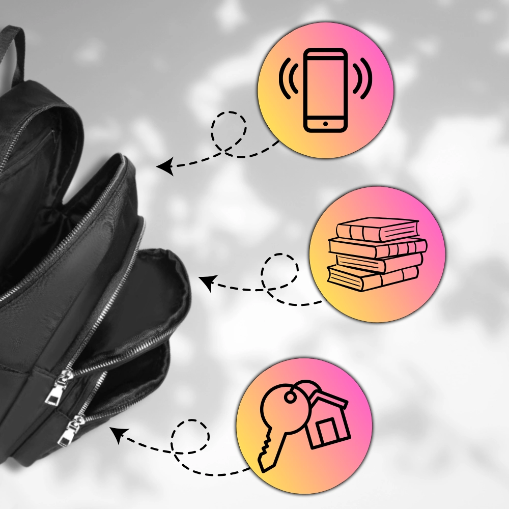 Na zewnątrz plecak oferuje aż trzy praktyczne kieszonki, idealne na drobne przedmioty, które chcesz mieć zawsze pod ręką. Z tyłu znajduje się dodatkowa kieszonka zamykana na zamek, co zapewnia bezpieczeństwo cenniejszych rzeczy. W środku znajduje się jedna kieszonka zamykana na zamek, co ułatwia organizację i pozwala na przechowywanie kluczy, telefonu lub portfela w bezpiecznym miejscu.