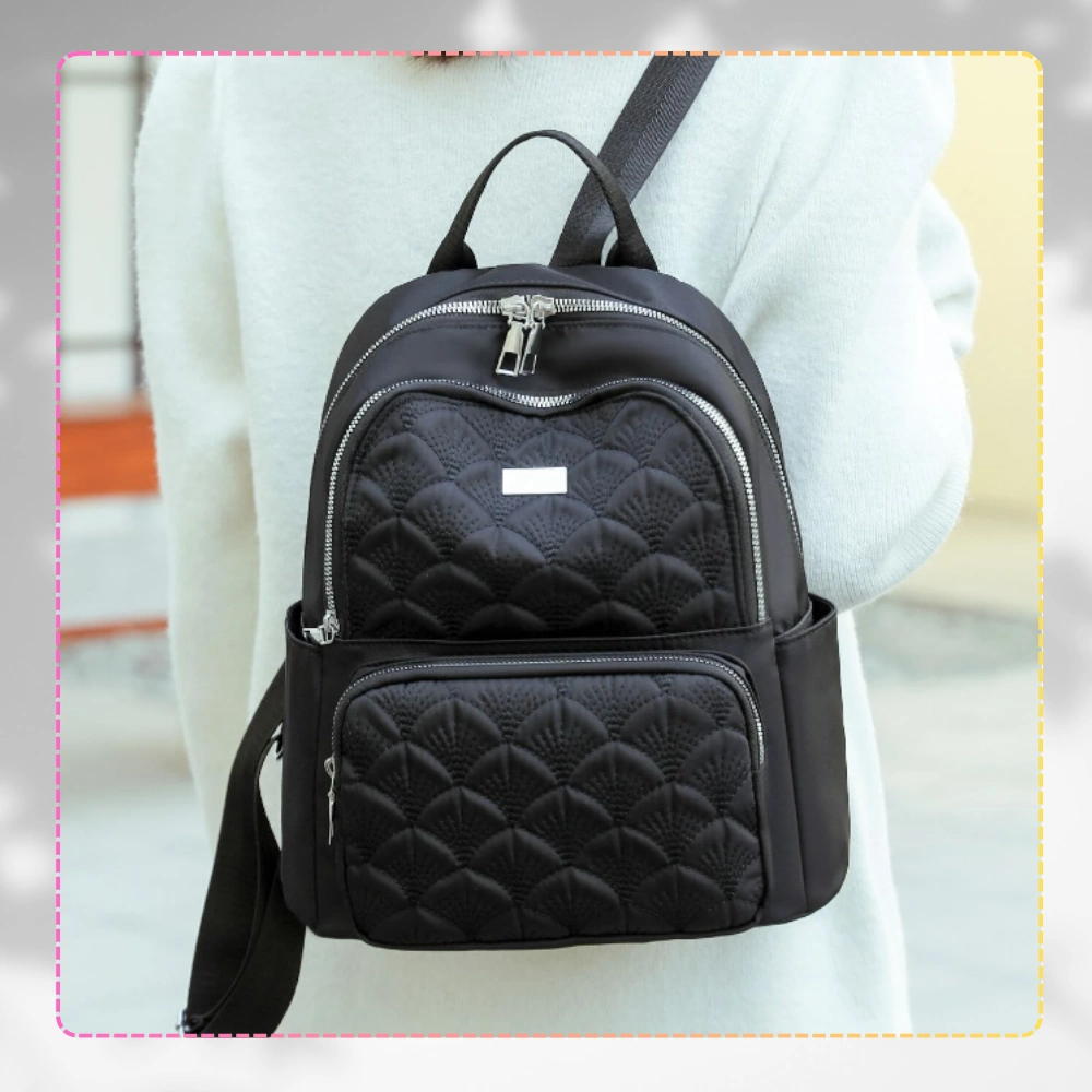 Pikowany Czarny plecak wodoodporny damski pojemny elegancki