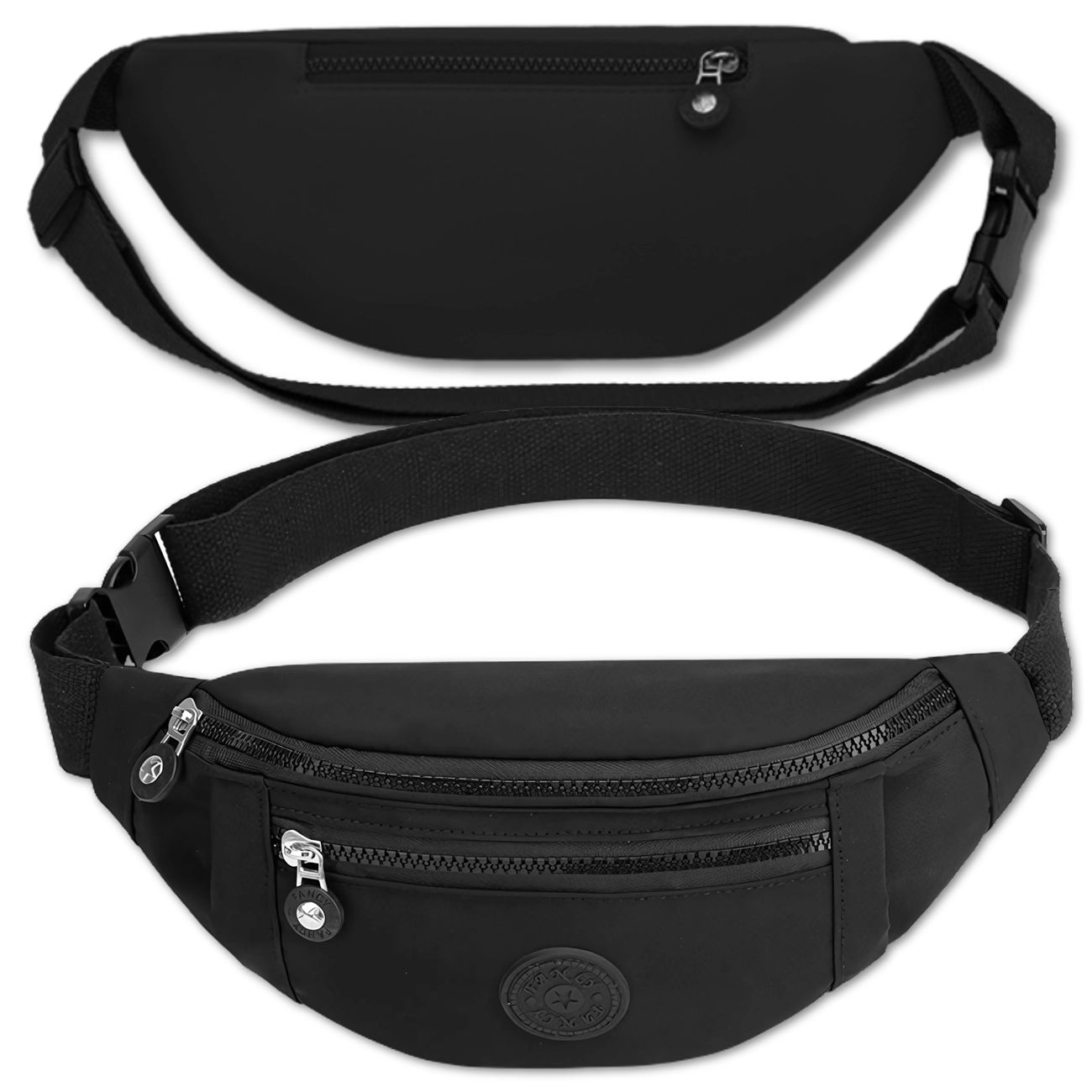 Czarna nerka biodrowa unisex z tkaniny Oxford lekko wodoodporna