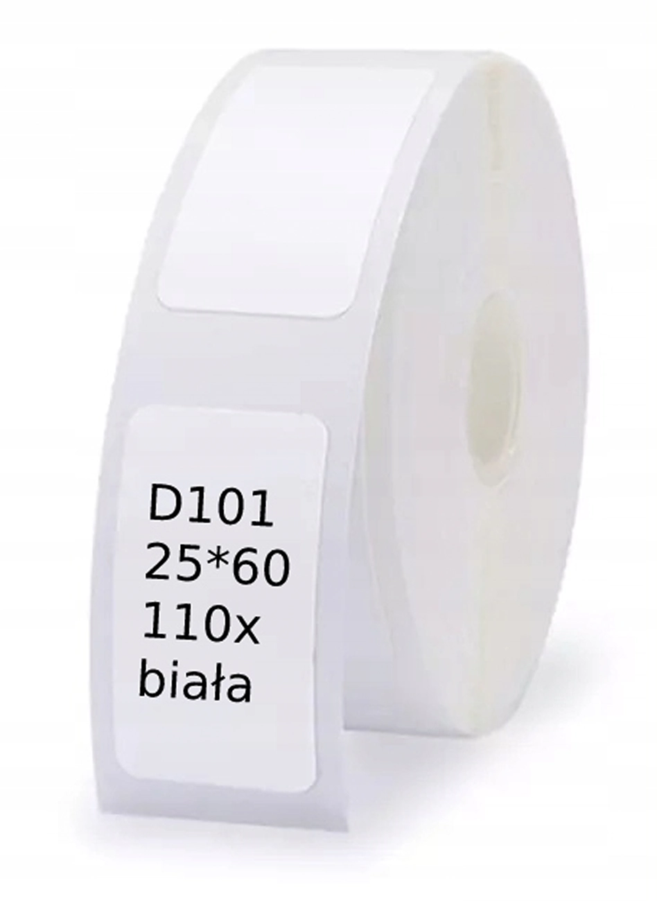 Tutaj sprzedajemy 1 rolkę o rozmiarze etykiet termicznych 25x60mm BIAŁE 110 szt naklejek do drukarek Niimbot D101