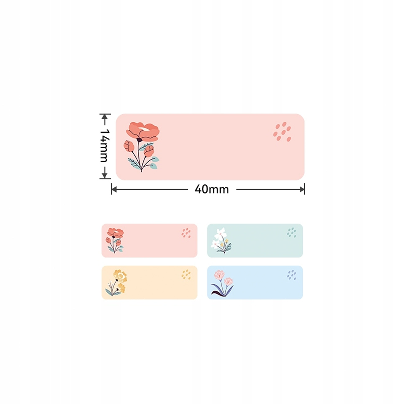 Tutaj sprzedajemy 1 rolkę o rozmiarze etykiet termicznych 14x40mm w kwiatki 160szt naklejek do drukarek Niimbot seria D