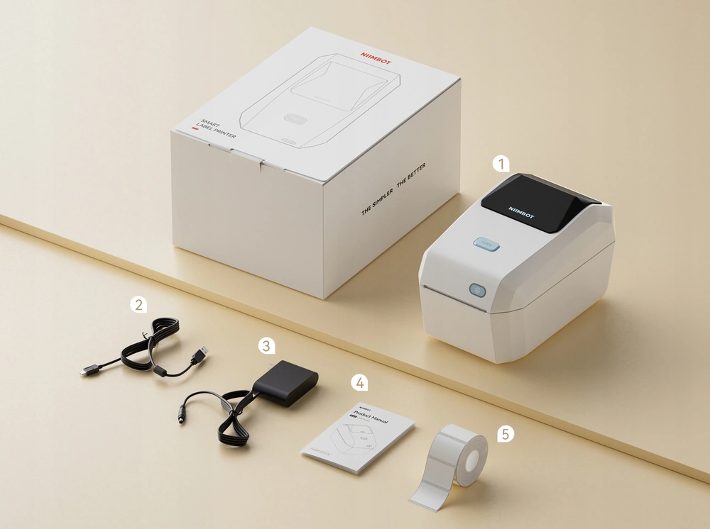 W zestawie otrzymujesz: drukarkę etykiet NIIMBOT K3W w kolorze kremowym, kabel USB do transmisji danych, zasilacz sieciowy, rolkę etykiet T50x30 (900 sztuk), instrukcję obsługi w wersji PDF (język polski i inne).