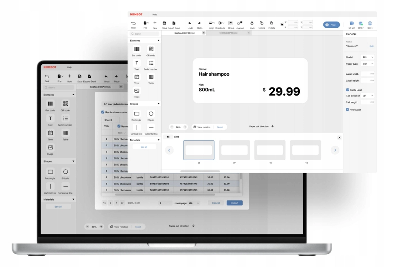 Drukarka jest dziecinnie prosta w obsłudze — włączasz ją przytrzymując przycisk, uruchamiasz aplikację, projektujesz etykietę i drukujesz.