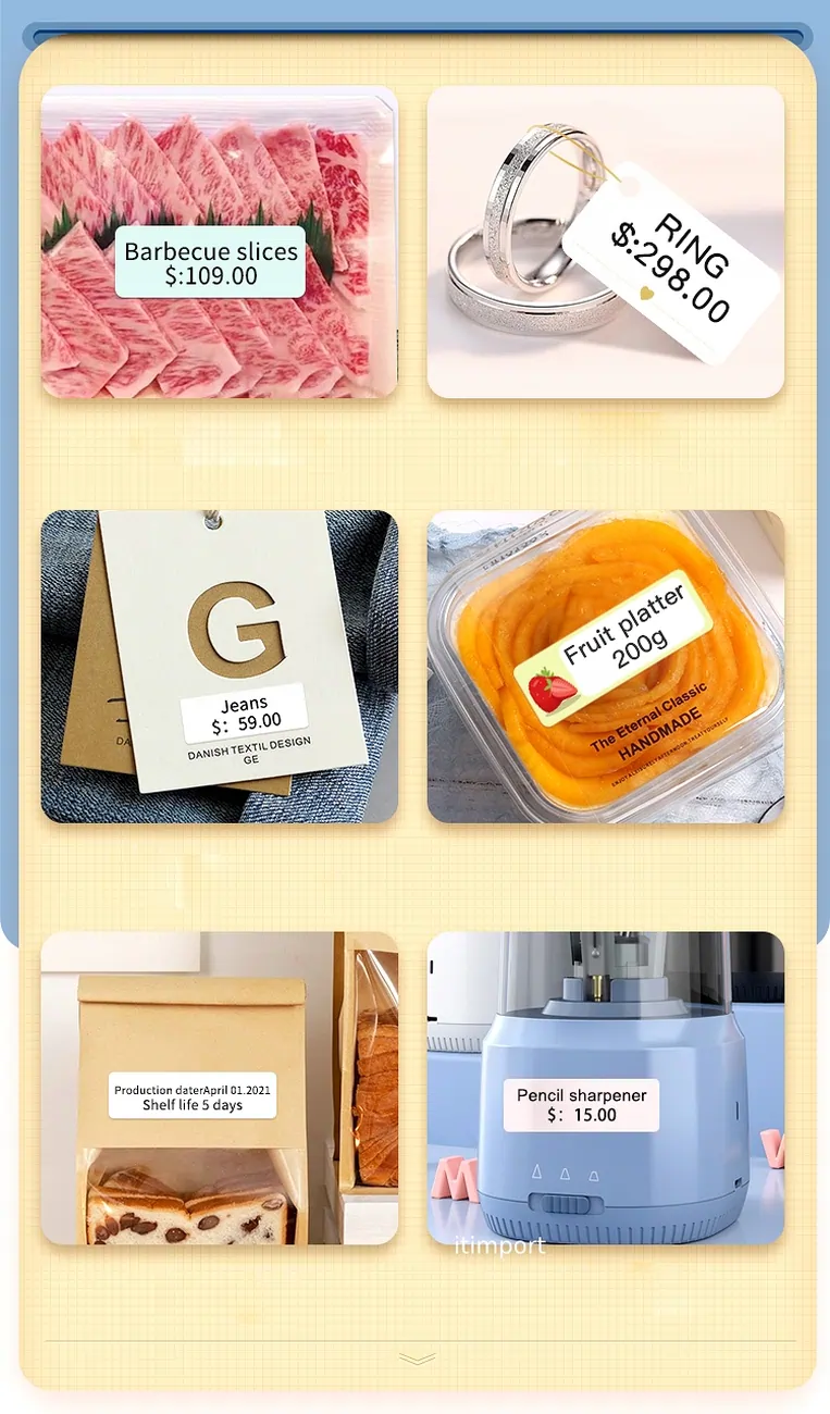 Etykiety są samoprzylepne, odporne na wodę, nie pozostawiają śladów kleju i doskonale sprawdzają się w codziennym użytkowaniu. Drukarka D101 będzie świetnym wyborem do sklepów, szkół, domów, biur i wszelkich zastosowań, gdzie potrzebujesz czytelnych i trwałych oznaczeń. Idealnie sprawdzi się do wydruku cen, dat przydatności, oznaczania zeszytów, przypraw, kabli, półek, dokumentów, produktów czy do tworzenia kodów EAN i QR.