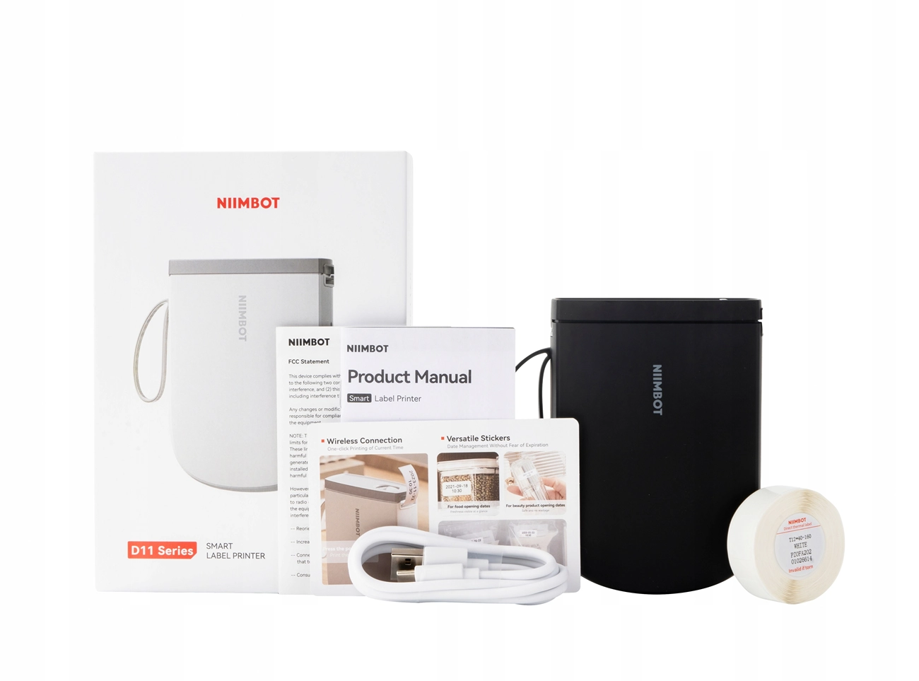 – Drukarkę termiczną NIIMBOT D11H w kolorze czarnym